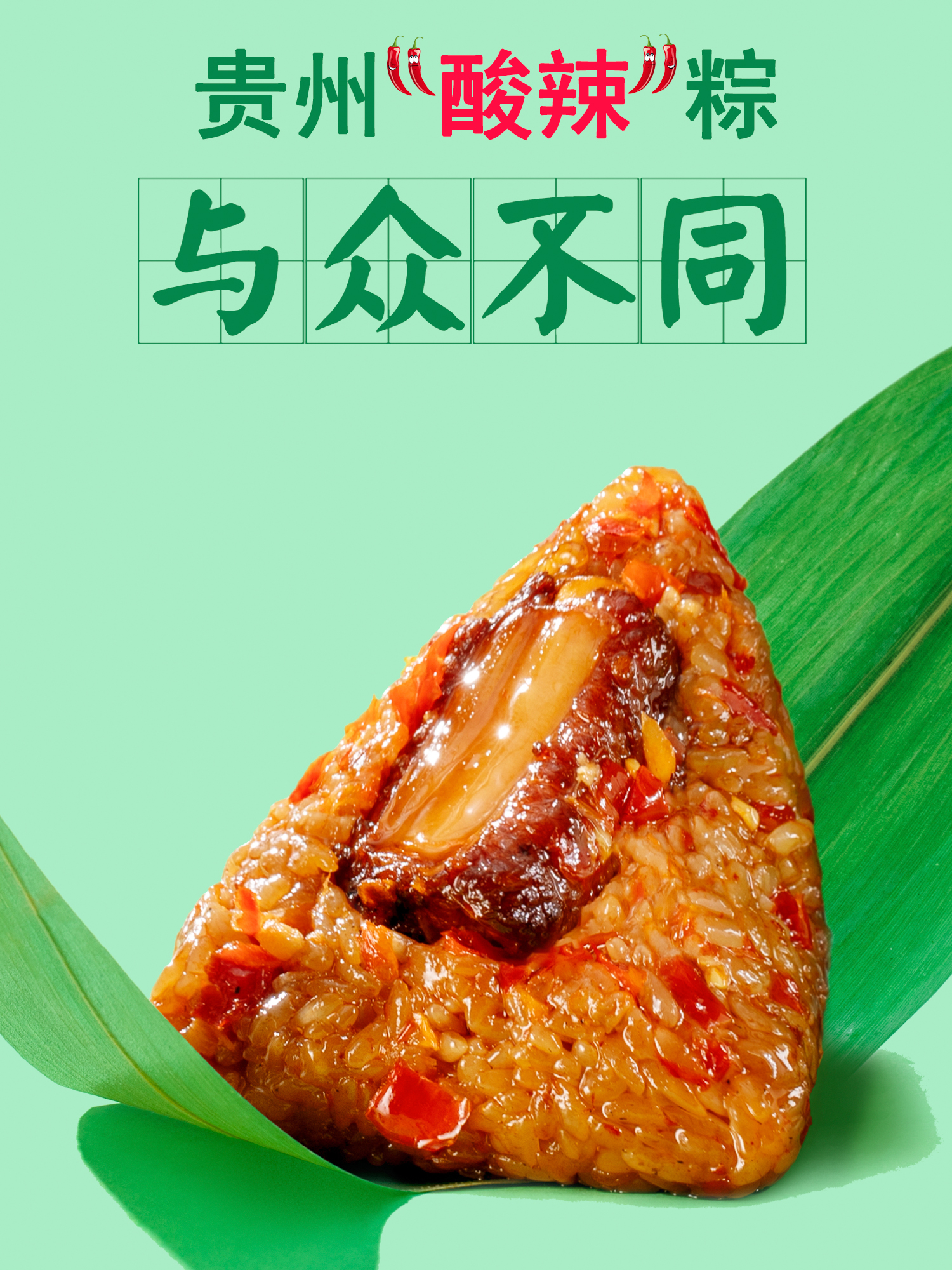 贵州糟辣排骨粽:以猪排骨为馅,搭配贵州糟辣椒,口感鲜辣酸爽。